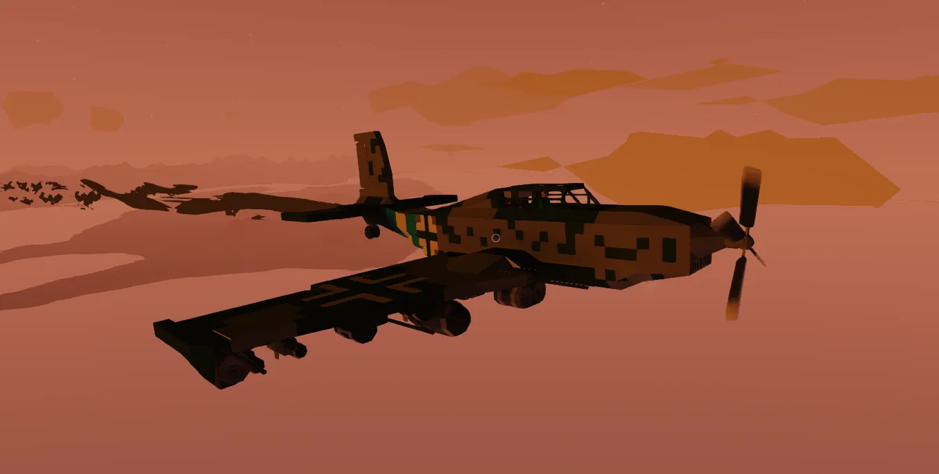 A German Fighter Propeller Plane that has 6 bombs, and 10 guns.
