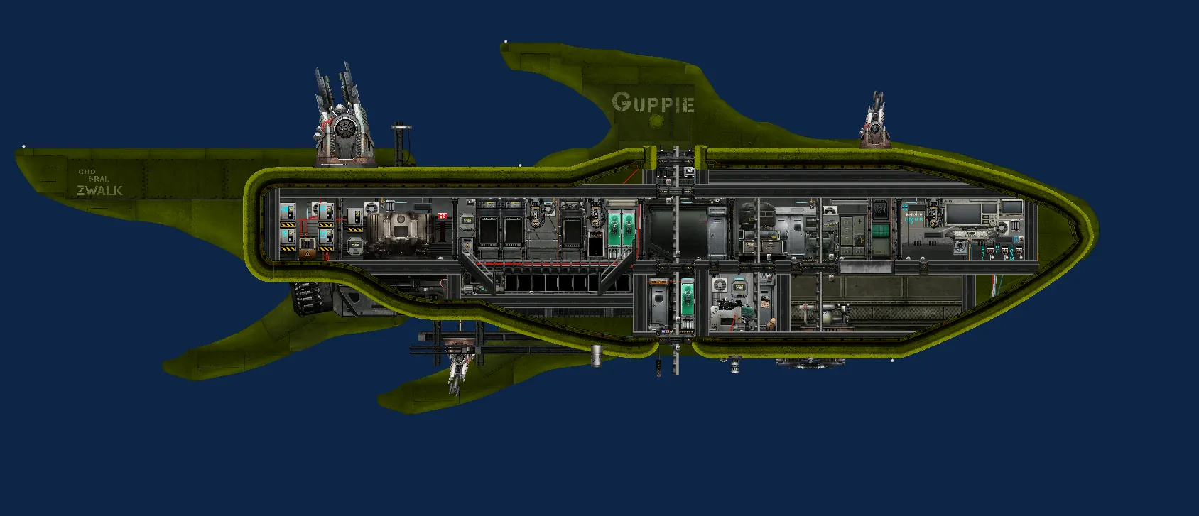 2 medium guns linked to one controller, 1 heavy, auto coil, depth bombs