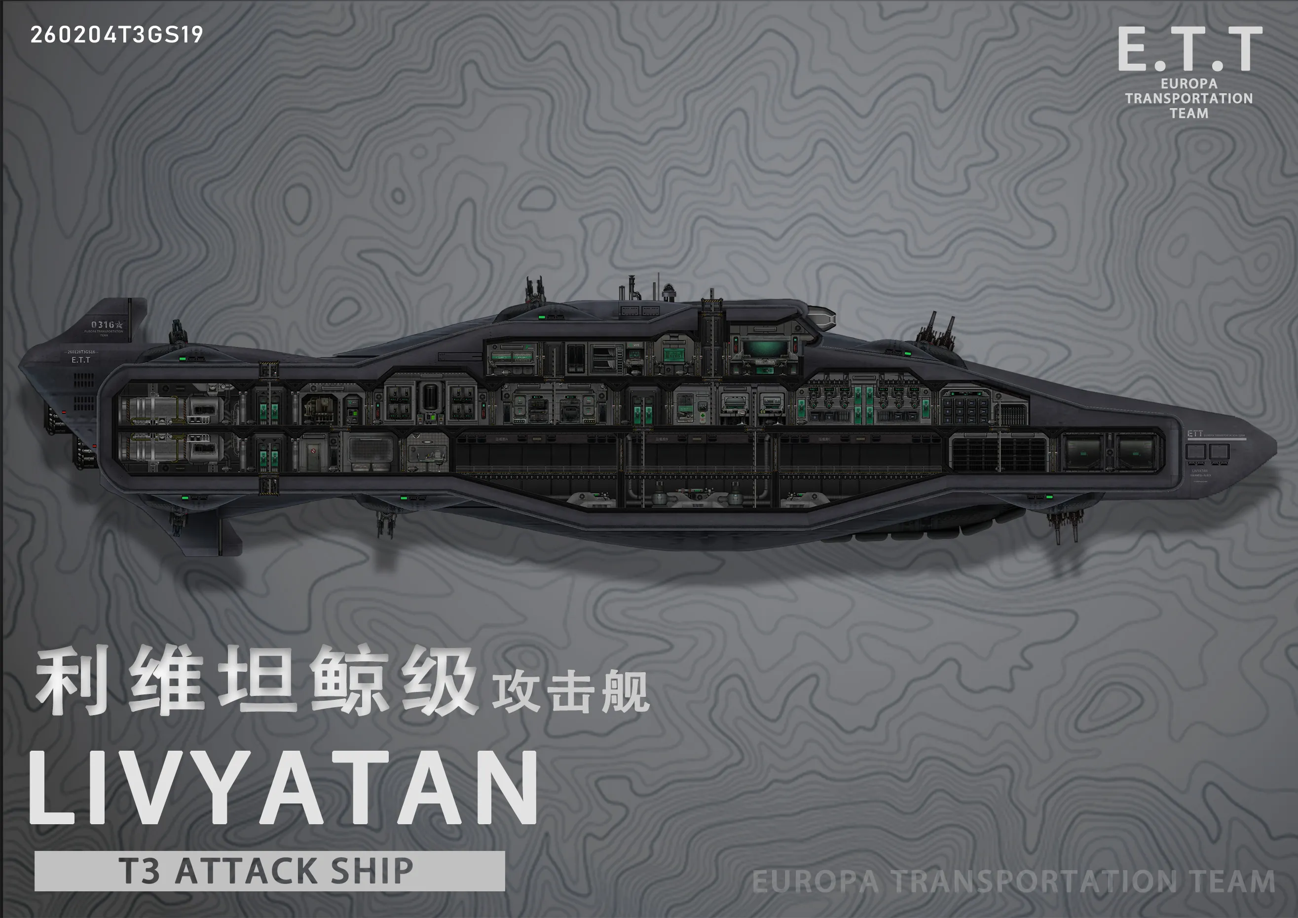 The Leviathan-class features a streamlined design equipped with a dual-engine propulsion system. Its weapon system, inherited from the "Basilosaurus"-class, includes eight large turrets, granting it firepower far exceeding that of conventional attack submarines. In concept, the Leviathan-class is intended to perform long-term escort missions in Europan waters, leveraging its massive size and ample firepower to consolidate the Union's dominance over Europa.