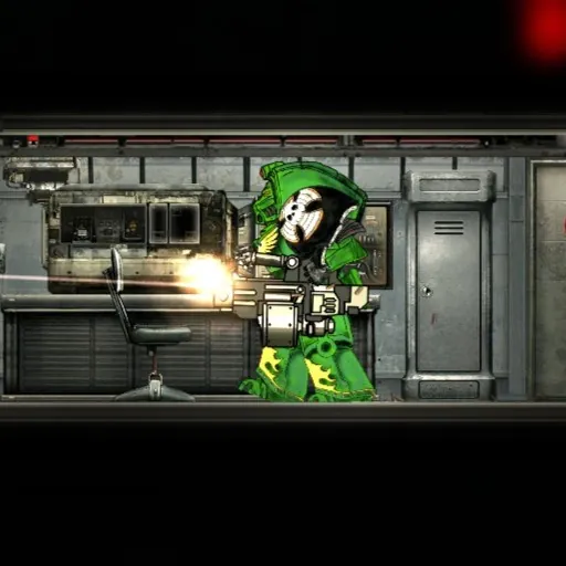 A heavy bolter of a Space Marine from the WH40k universe.