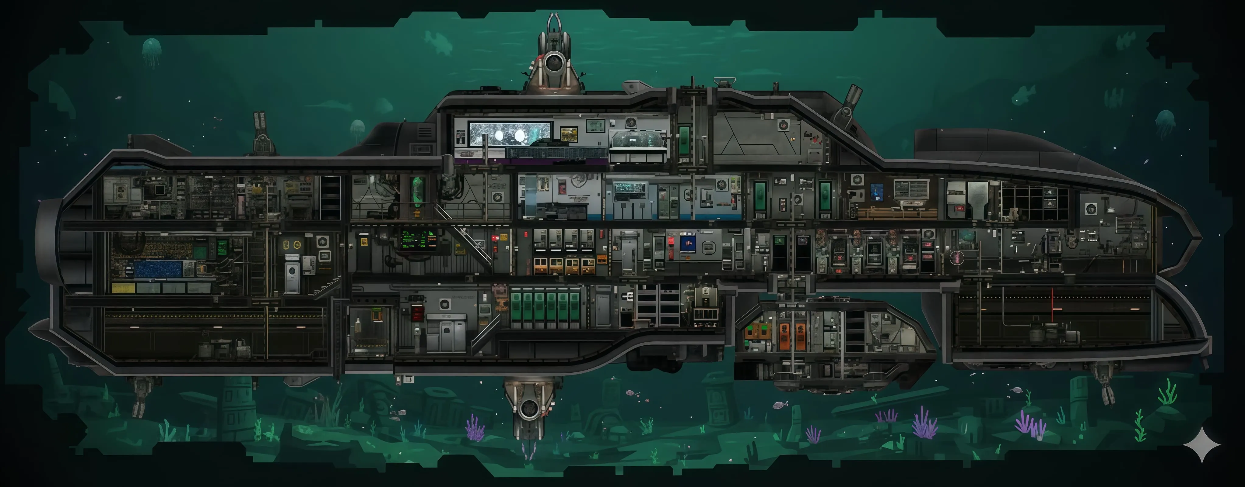 Stealth: A highly efficient silent running system allows the sub to bypass dangerous areas and evade threats undetected.