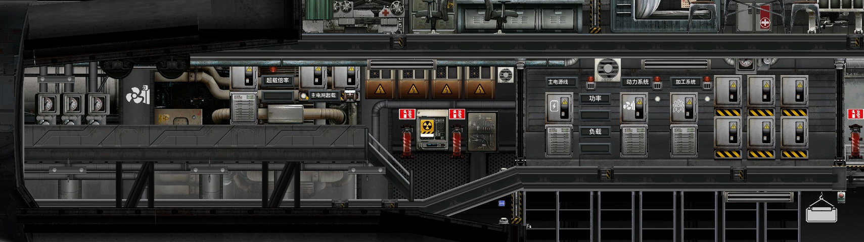-- Power Section: Includes reactor room and electrical room, with junction boxes and batteries concentrated here