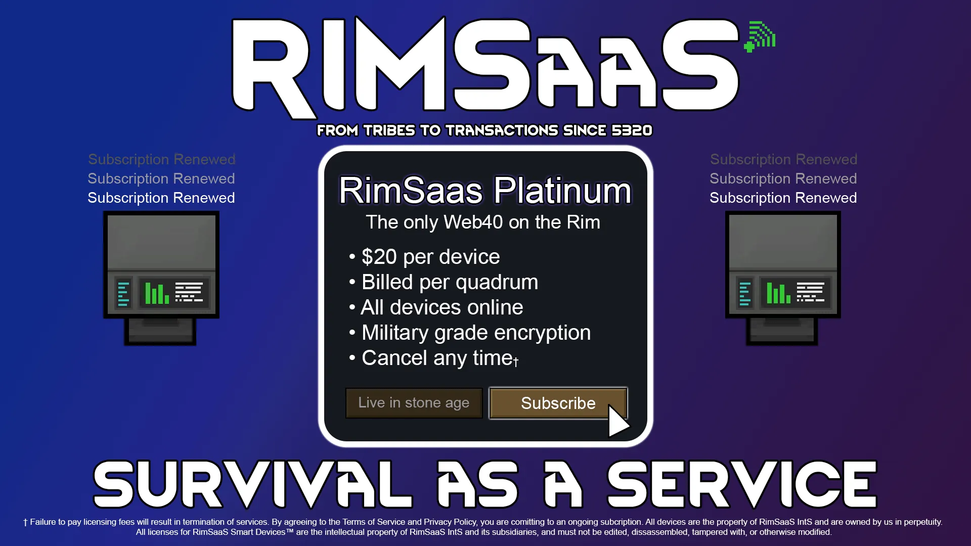 Upset at the unrealistic omission of Software as a Service subscription pricing models in what purports to be a colony "simulator"?