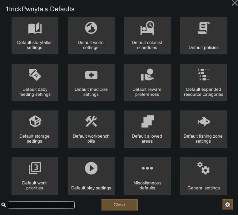 Tired of having to go through the same ritual every time you start a new colony of configuring your colonists' schedules, setting your quest reward preferences, turning down the medicine setting so you don't waste your good medicine on bruises, and more?