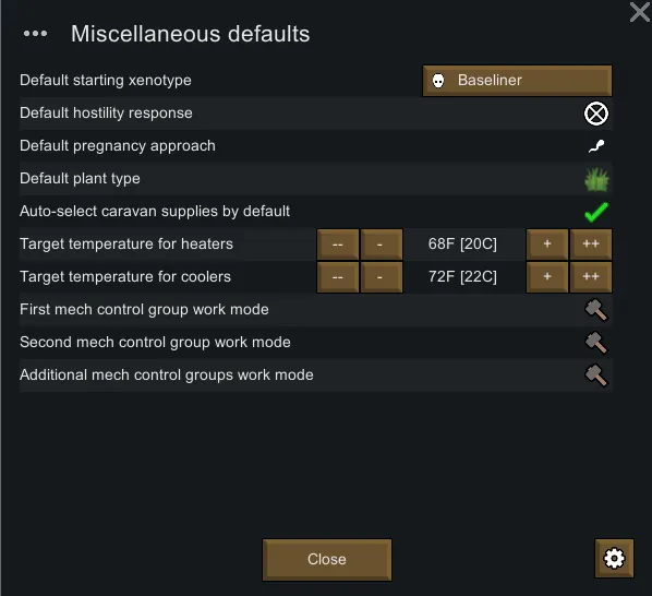 02/10/2026: Add settings backup, default play settings, default fishing zone settings, caravan supply auto-select toggle, default starting xenotype, default policy assignments, other improvements, bug fixes, and mod compatibilities.