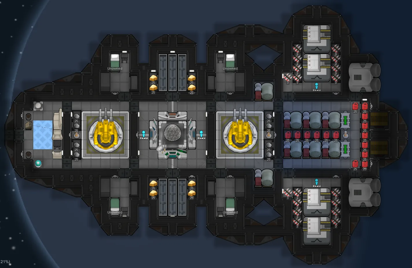 A ship pack for the Save our Ship 2 mod, that includes 27 ships of varying sizes, from tiny space-carrier deployed fighters to battleships spanning entire maps, which will be able to spawn as enemy ships. (And 10 can now be used as starting ships. + theres 8 blueprints)