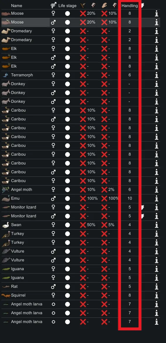 [*] Minimum handling skill added to Wildlife tab