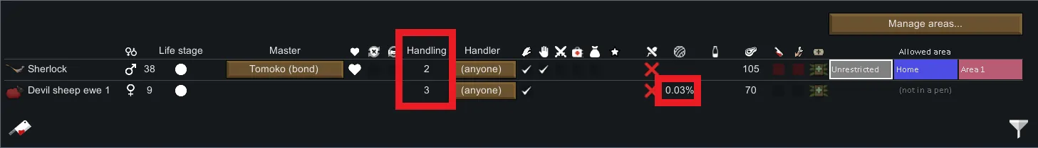 [*] Minimum handling skill added to Animals tab
