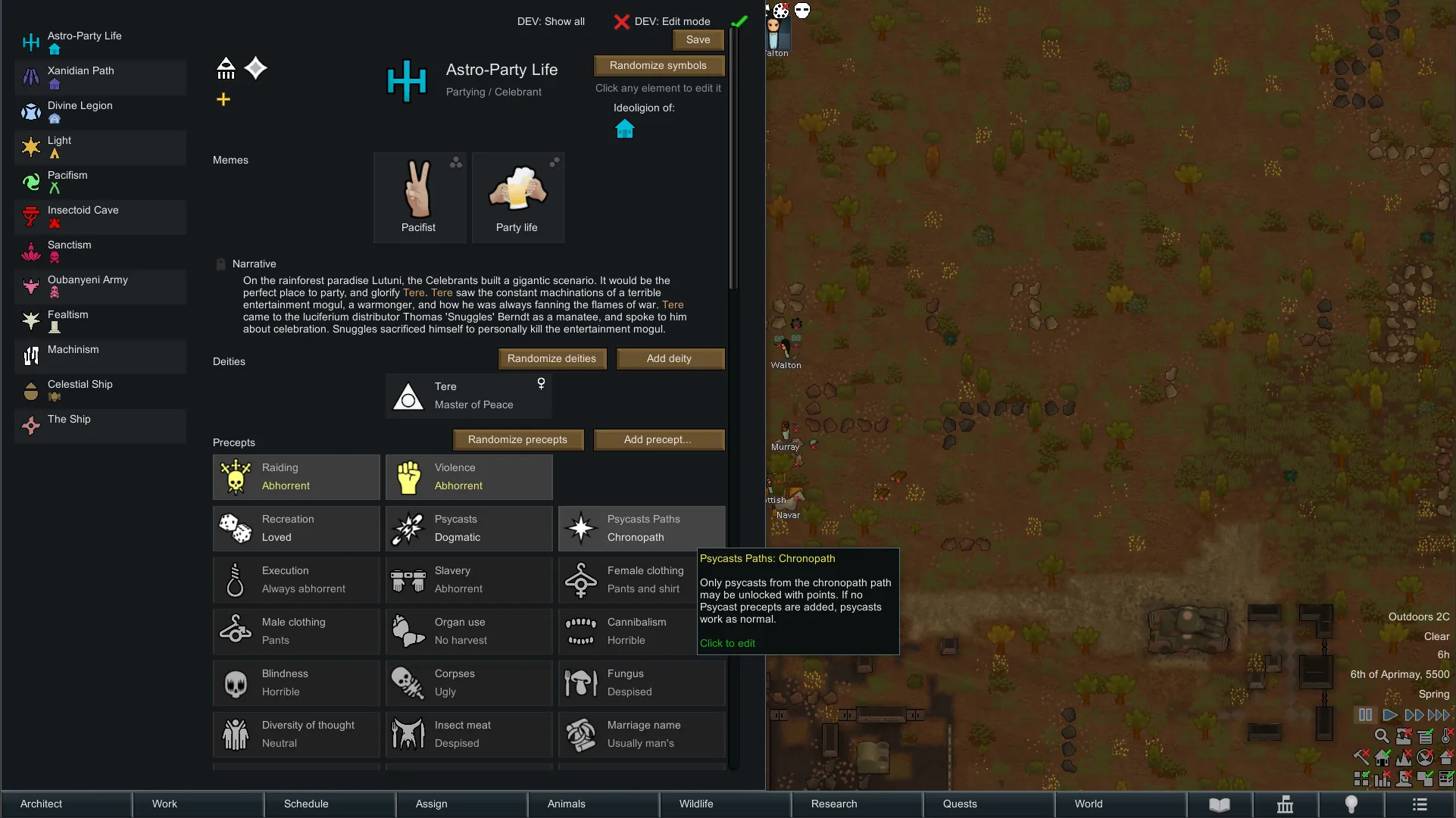[b]- Colony-controlled psycasts:[/b] Gate each psycast path behind a simple Ideology precept.