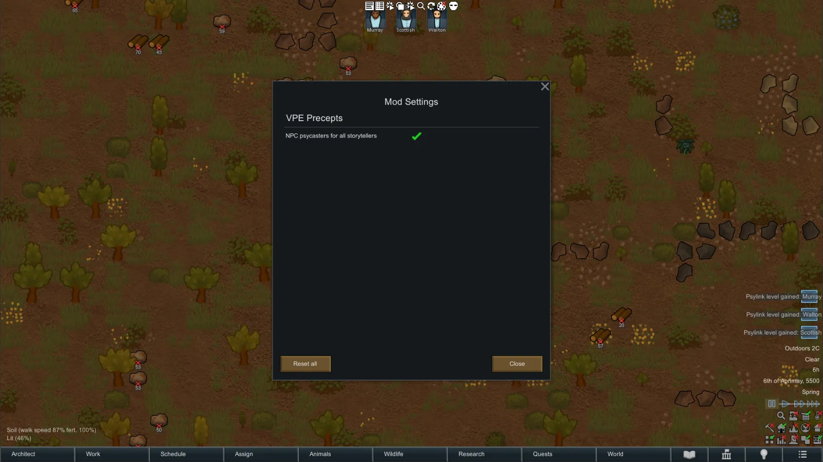 [b]- Optional storyteller spawns:[/b] Toggle a setting that lets [i]all[/i] storytellers spawn psycaster NPCs like VPE’s Basilicus Bestower.