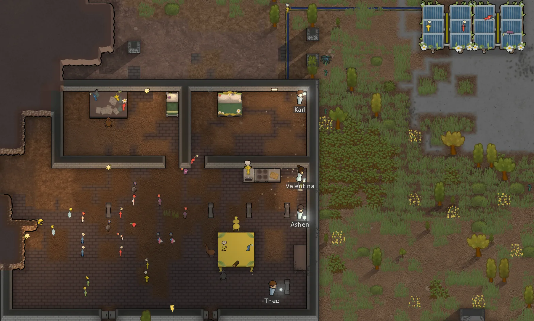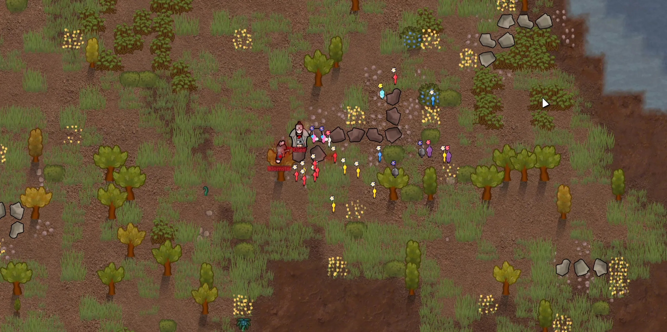 Colonists can bond with Pikmin, improving their mood and work efficiency when Pikmin are nearby.