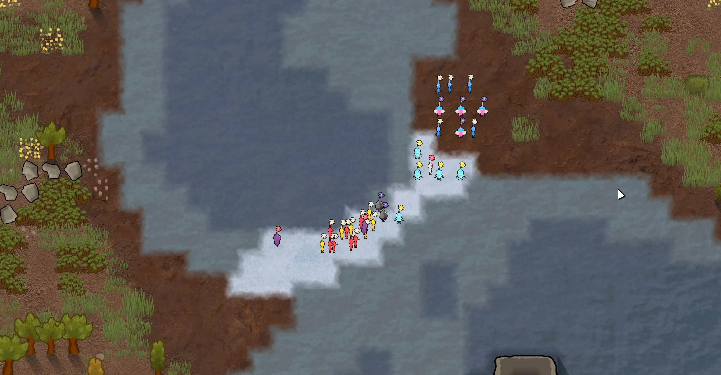 - Since they changed pathfinding. All pikmin can travel via water terrain, but with reduce speed. (Minus the ones who can usually cross water)