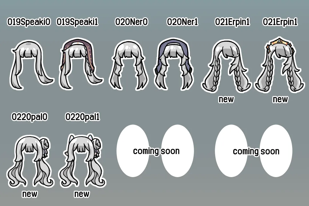 (As of 2025-12-18) Hairstyles for 021Erpin and 022Opal have been added.