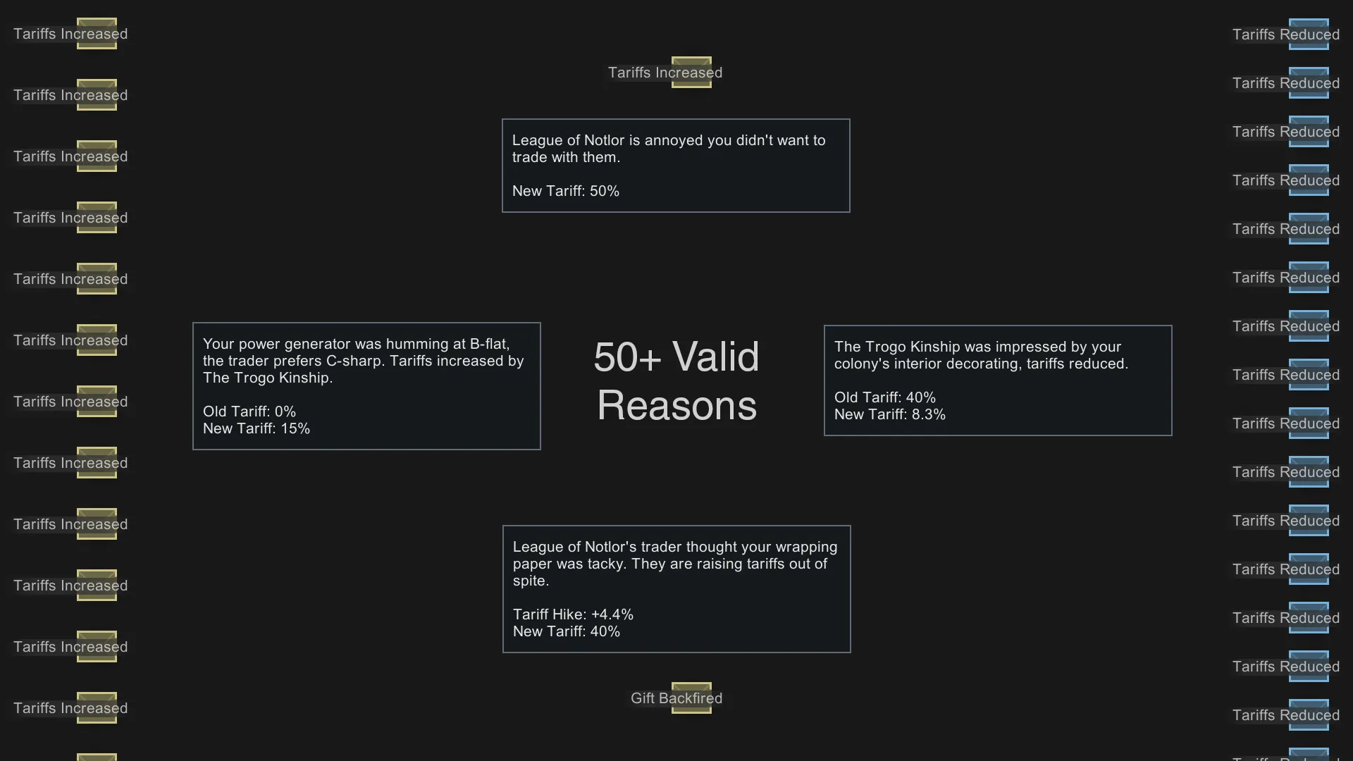 [*] Factions over 75 goodwill won't charge tariffs. (Toggleable)