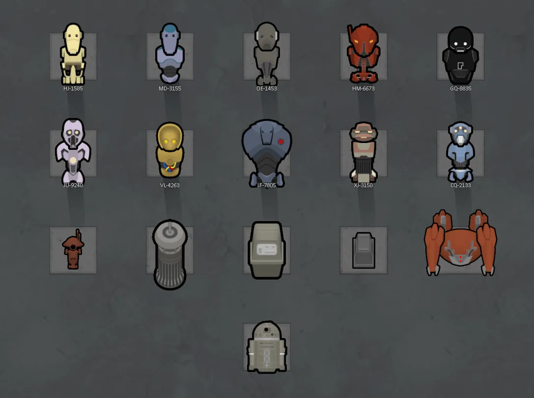 This Outer Rim series module adds droids and droid related items, buildings and more. This module will also add droids to various other modules if they are both active.