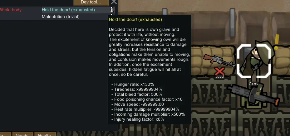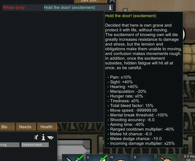 This ability is perfect for dying with gun in hand against a horde of mechanoids with back to a packed daycare center.
