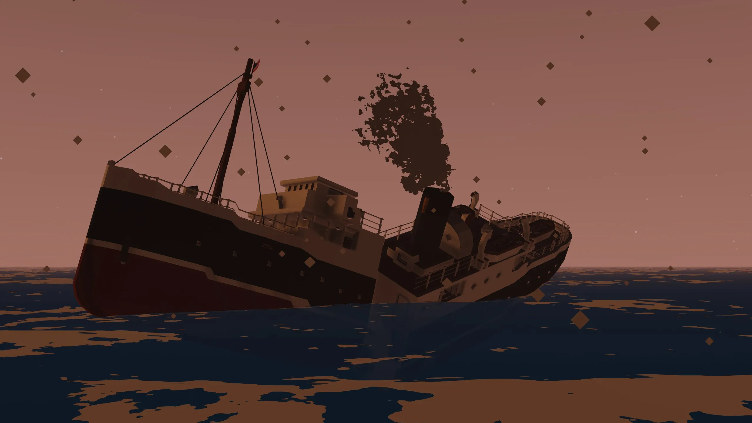In the cargo hold, there's a box located that is used to sink the ship. The SS Rosie has 7-10 different built-in sinking methods, depending on how you'll mix the sinking and split options.