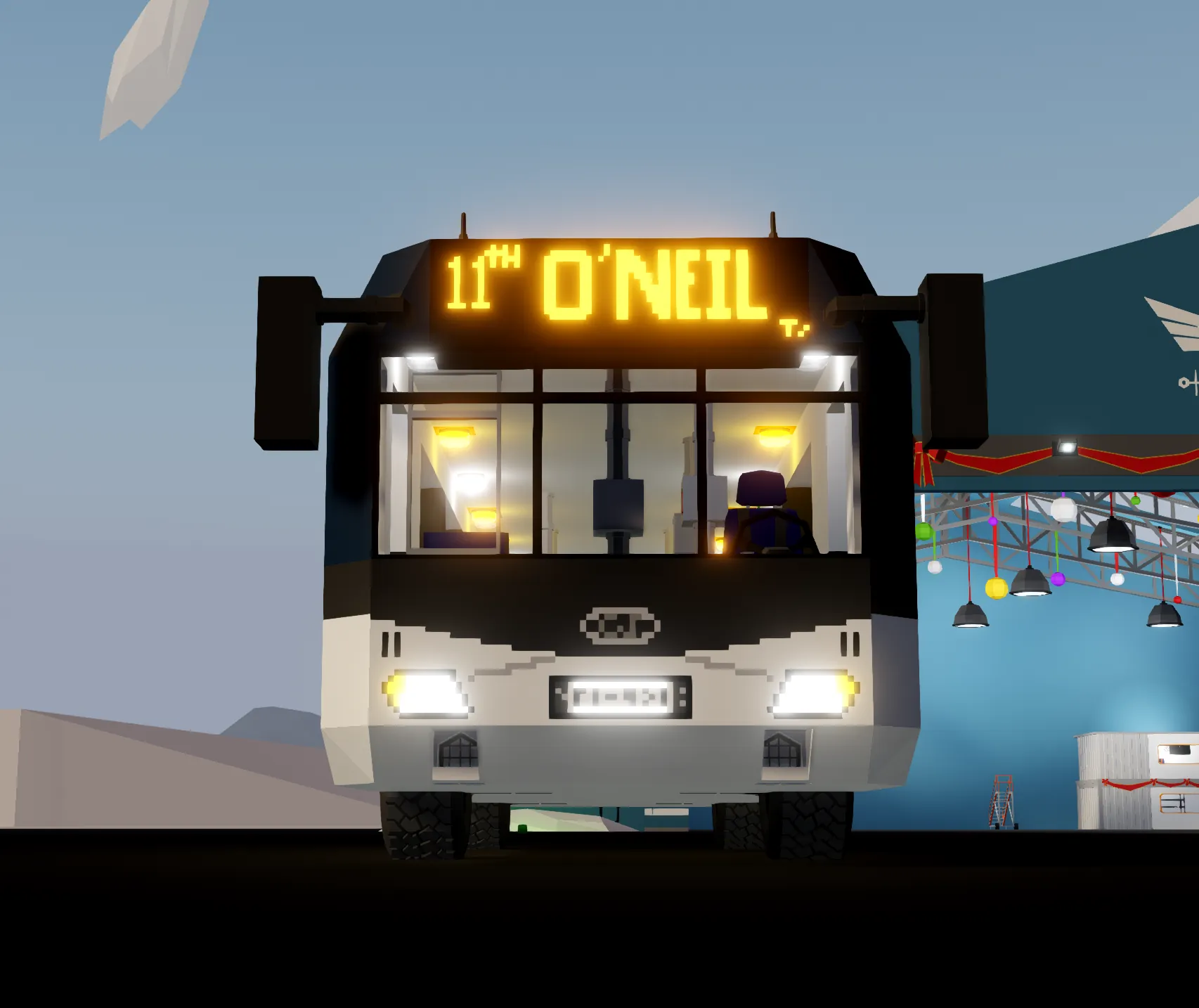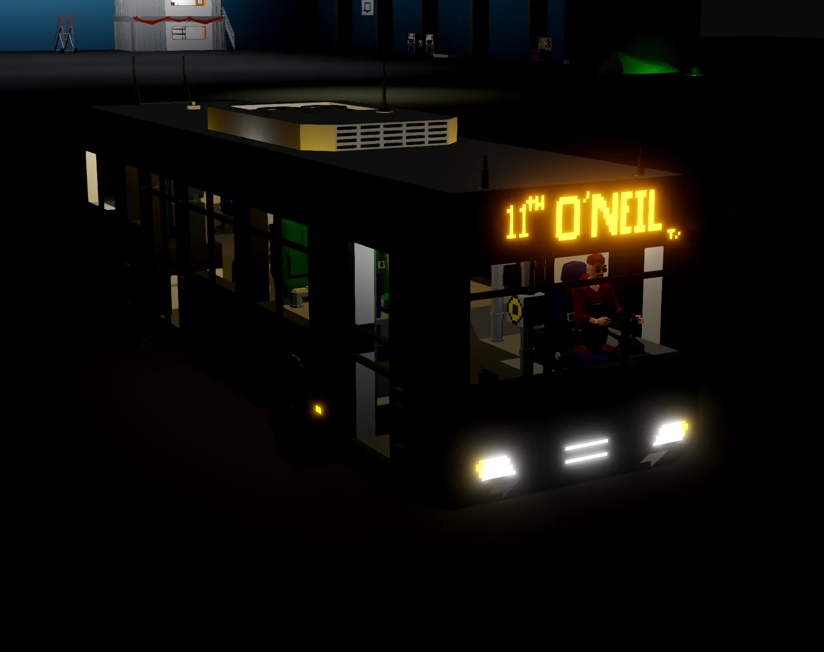 The O'Neil / Sawner Bus is a specially designed to serve the Sawner islands. It has a max load of 14 passengers and 1 driver.