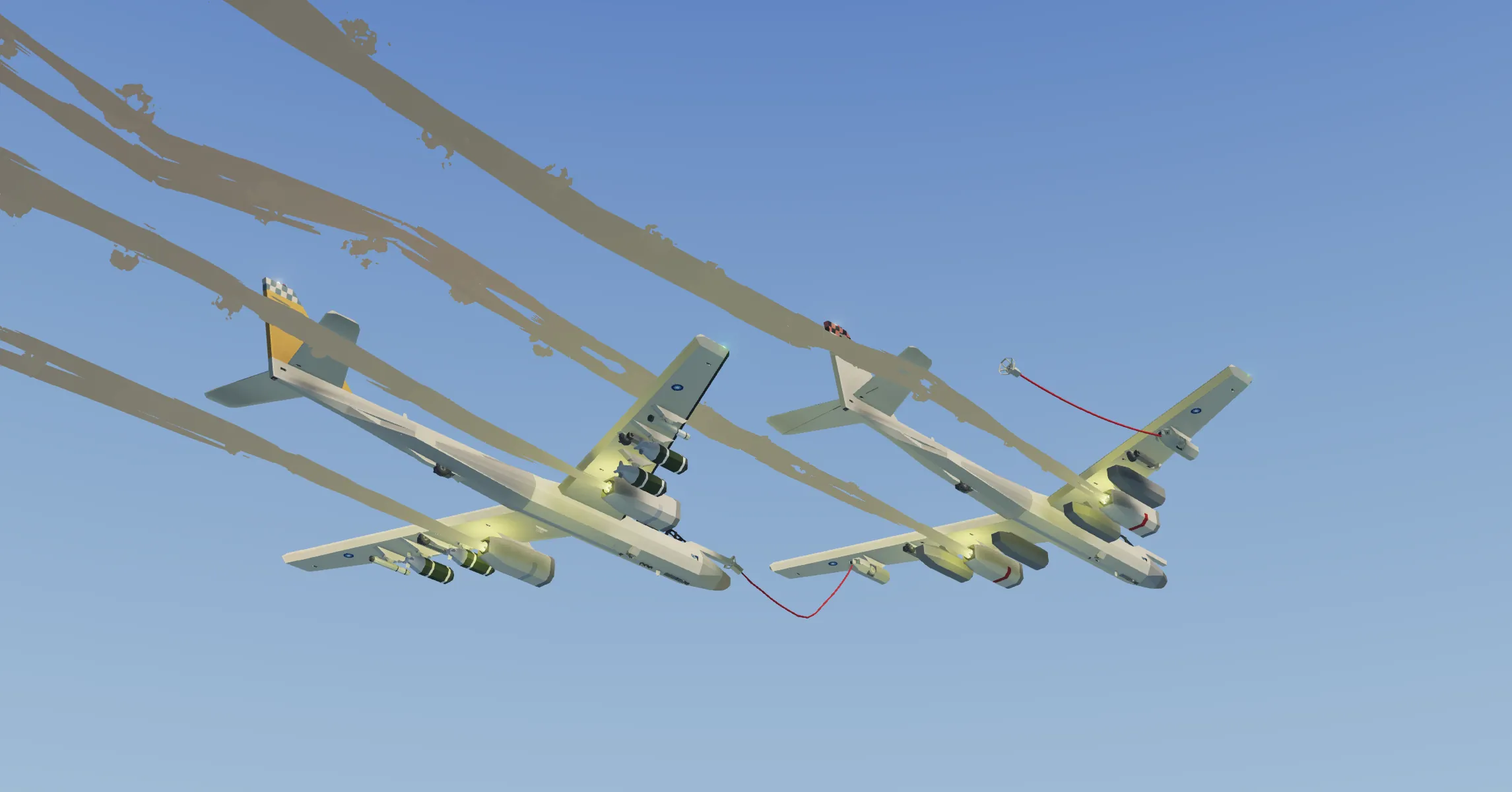(4) Level off aircraft, enable stabilization with key 1 and trim the tanker for stable, level flight.