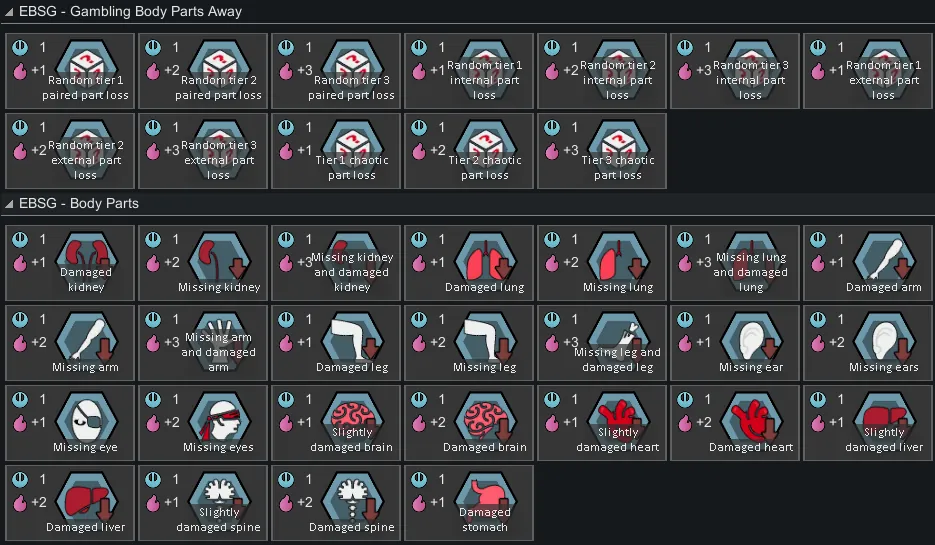 Expanded Biotech Style Genes(EBSG) is the step beyond [url=https://steamcommunity.com/sharedfiles/filedetails/?id=2985153870]More Biotech Style Genes[/url]. Where that series sought to expand ranges that already exist, this series seeks to add ranges that should exist. You get gene ranges that alter sleep fall rate, but why not a range for changing the rate it recovers? If you can have fire resistance genes, why not have genes to resist other types of damage like frostbite and acid?
