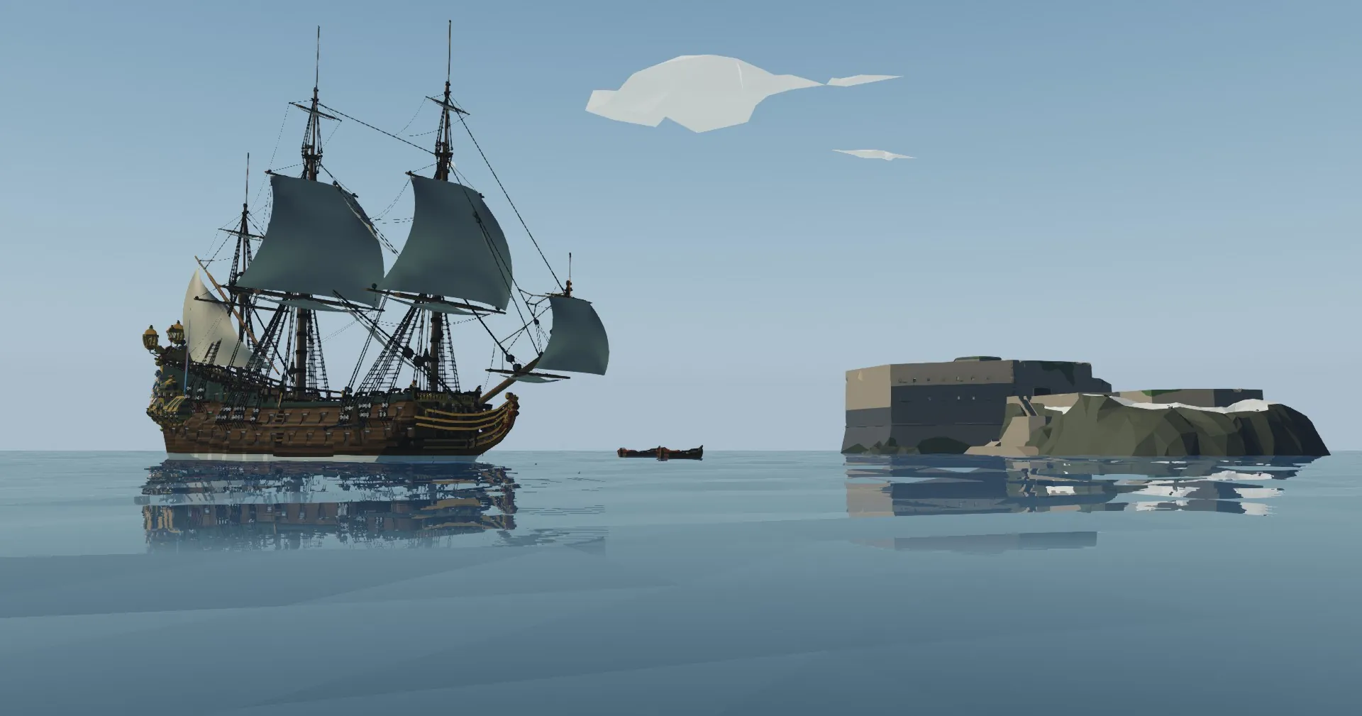 This ship is 𝐥𝐚𝐠𝐠𝐲 due to an extremely high amount of physics bodies thanks to the cannons. There WILL be an optimized version of this ship releasing in the near future which removes many of these bodies, however some features will be removed when these bodies are removed. This version, the full one, is intended for singleplayer and small servers. It is theoretically possible to use her on larger servers, however she must be out at sea.