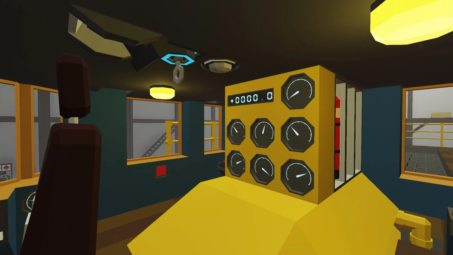 The machine is imposing in size, 2 stories high, with a bright yellow funnel and a towering winch anchor point above the cabin, with one of the 4 cameras inside an eye artwork. It has even a bed to sleep in on the right side!