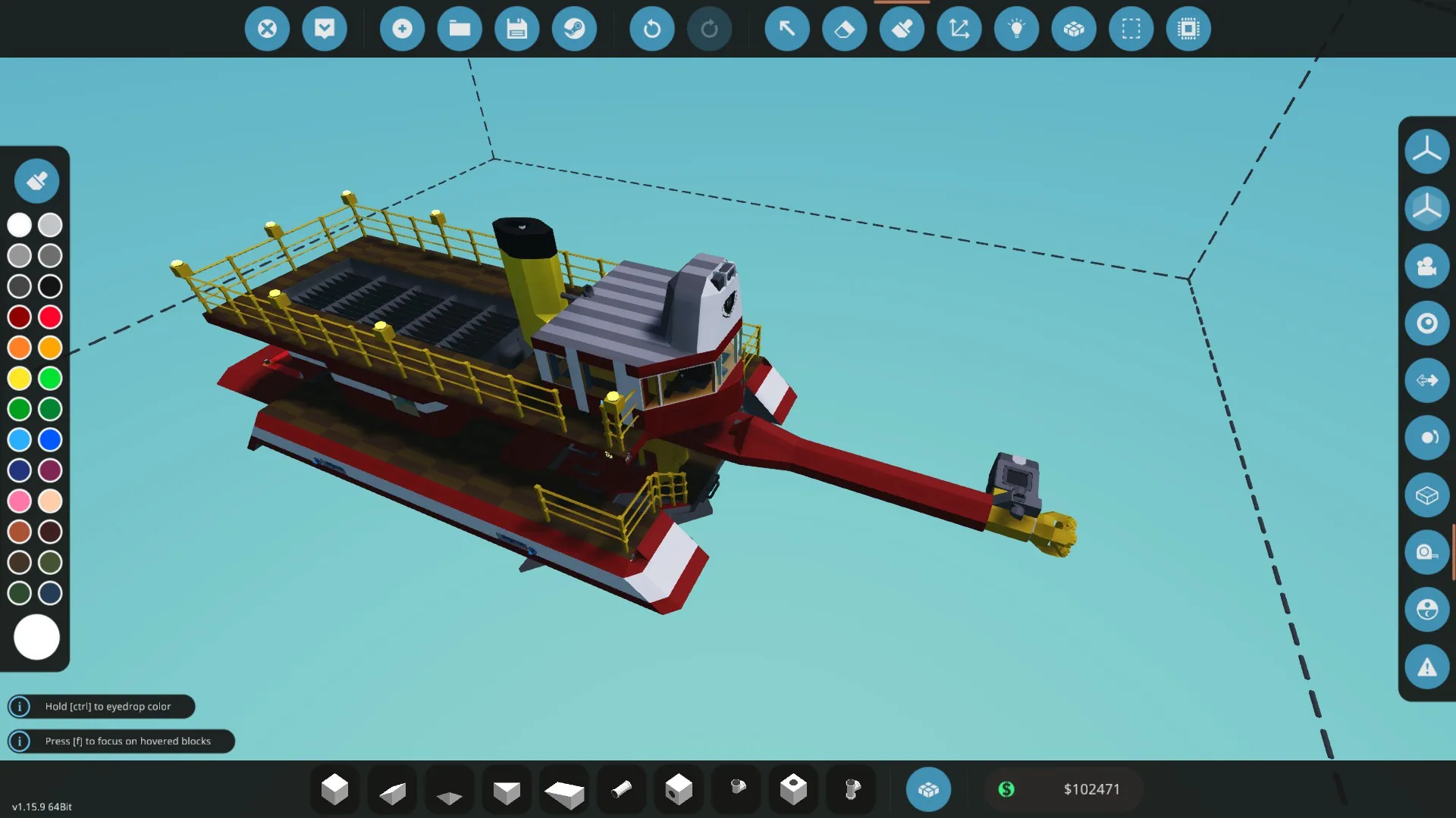 - W/S for throttle and "brakes": tank track wheels only have parking brake, so I added and hid normal wheels on the same transmission, but it's clearly not effective: just use parking brake.