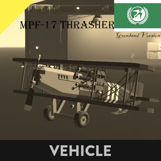 Constructed of wood and canvas and originating from Grenland, the MPF-17 "Thrasher" -also known as the Attack Biplane- is a versatile aircraft that neither excels nor falls flat in any one scenario. It is capable of mounting either 1 bomb or 6 rockets, and holds either 100 armor-piercing rounds or 100 firecracker rounds for its main gun.