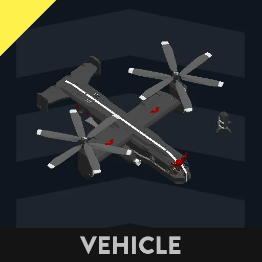 I worked on this for a week, and then made the other variants (cargo and firefighting) in a couple days. It is a mostly functional tiltrotor aircraft. In VTOL mode, it flies like a helicopter, and can tilt the rotors forward to fly like a plane. It has a max speed of around 70 knots in VTOL mode and 270 knots in plane mode. This version is for search and rescue missions, and features 4 harnesses on a winch and rail to rescue people in situations where the vehicle cannot land.
