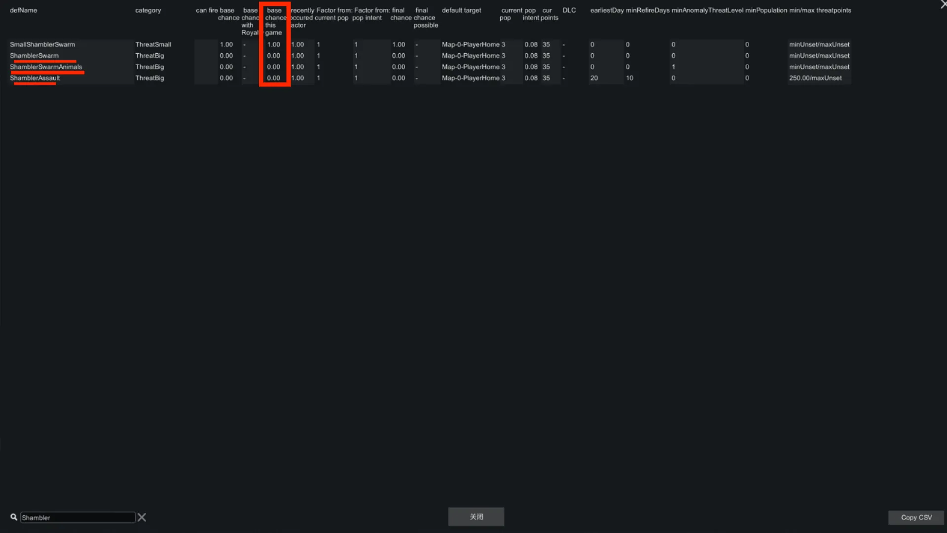All three have their baseChance set to 0.