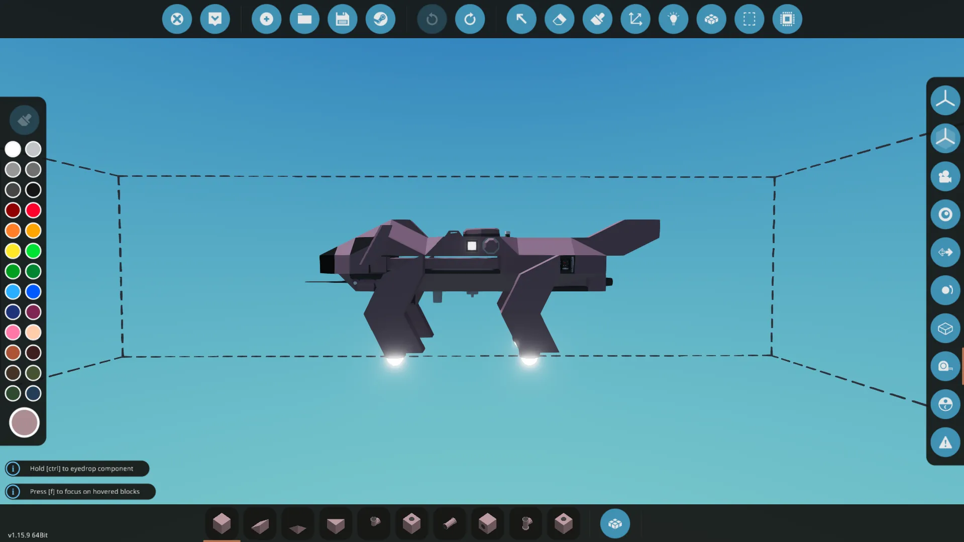 The fastest speed mode can go slightly faster than the walking speed of a player, if you run (W+Shift) the SFRDog will [i] not [/i] keep up with you. The radar range is only a couple of meters, it will sweep the area in front of it in search of someone to follow- that means it will also try to follow players you may not want it to including NPC's. This dog also [i] cannot [/i] go backwards, so please be mindful.