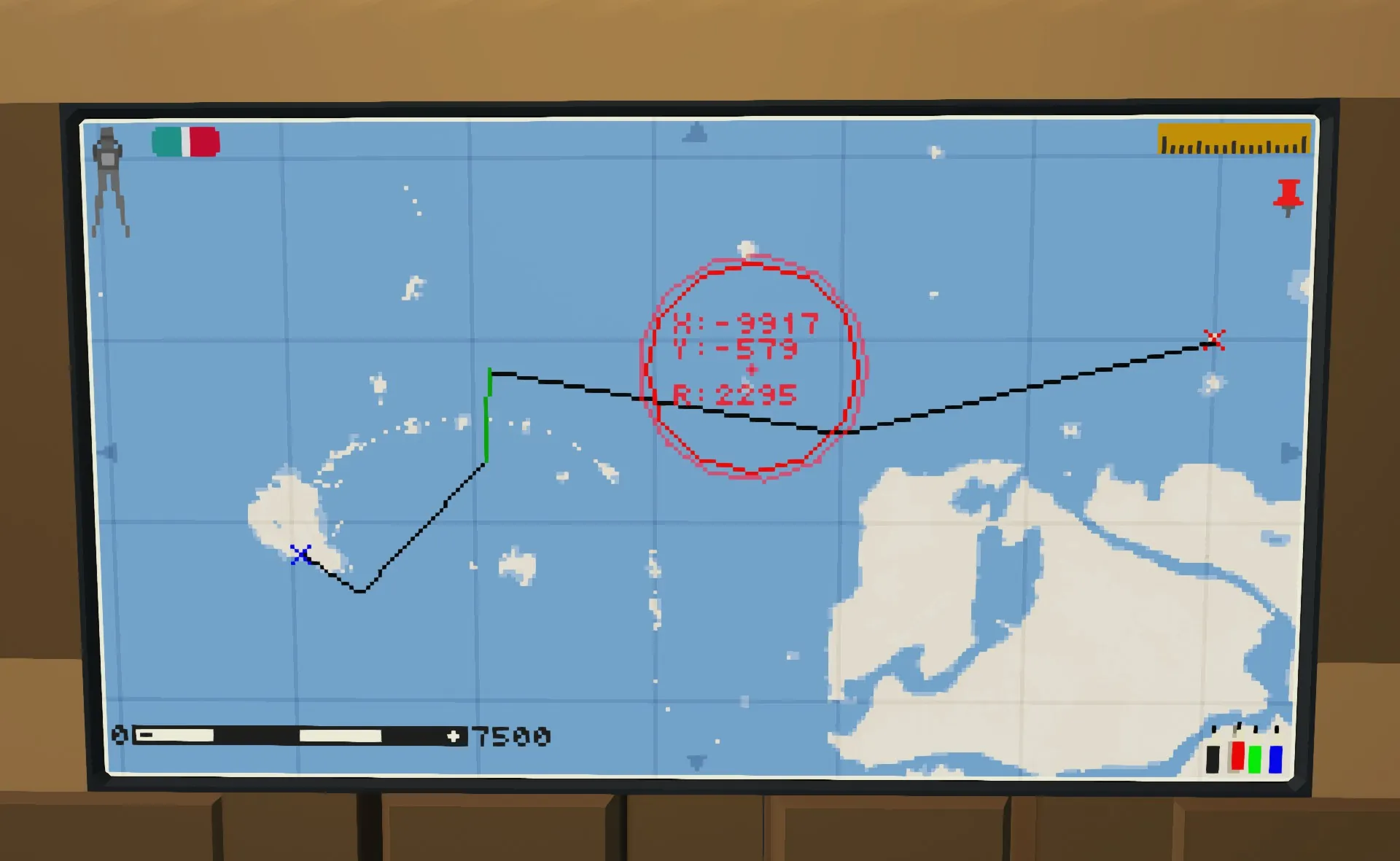 This is a map plotting tool. It will not show you where you are, the whole point is for you to navigate where you are with the help of this map. You can plot your routes measure distances, place markers, lines and circles to aid with your planning. Perfect for a build who is ment to be part of history where fancy GPS's did not exist yet! The UI is designed to not look like a display but an actual map (within the limitations that it is a display) to instill an emersion for the historical enthusiasts.