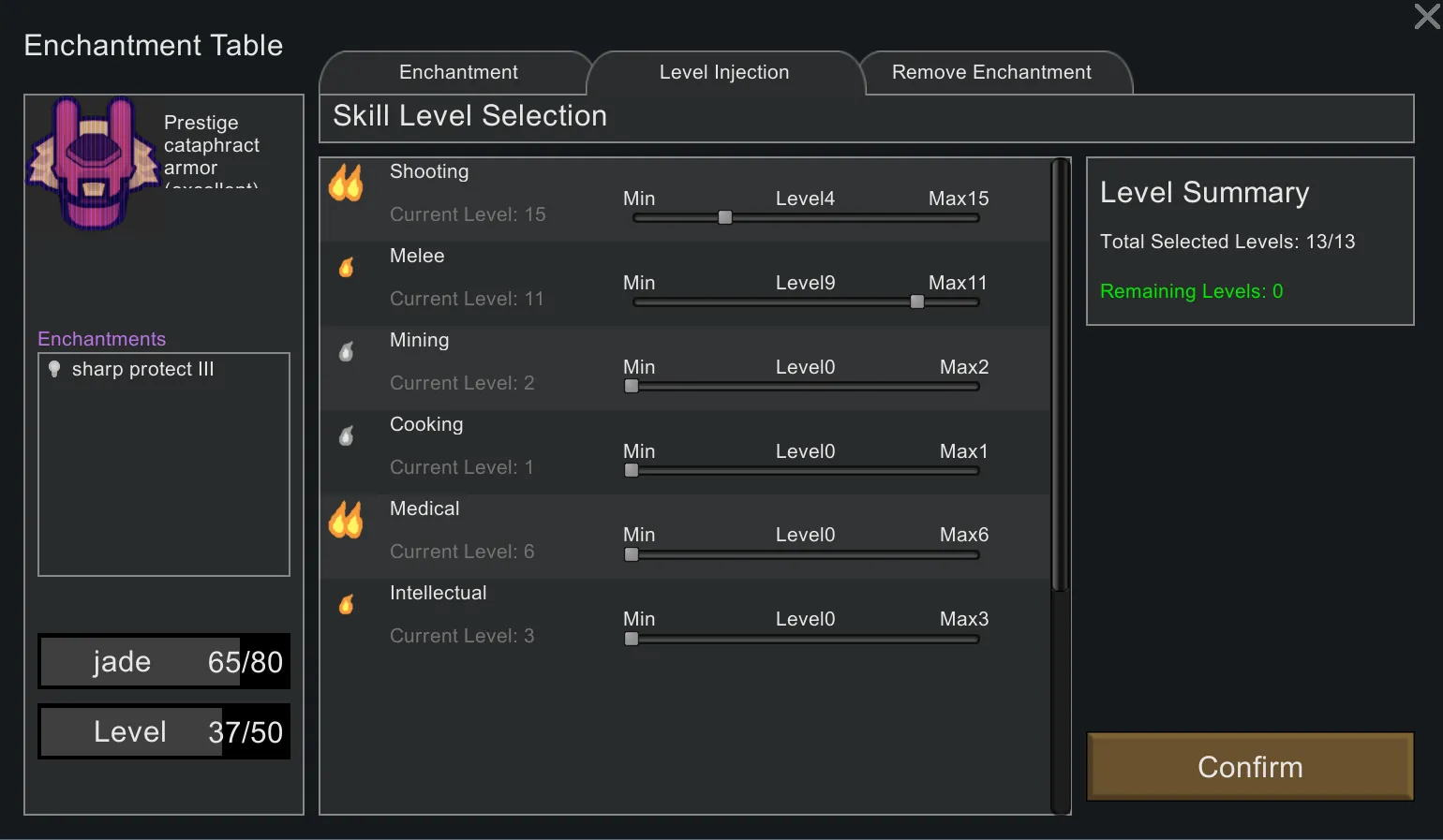 This mod introduces an enchantment table and a variety of enchantment affixes, allowing you to consume pawns' skill levels and use jade as a medium to apply enchantments onto apparel and equipment.