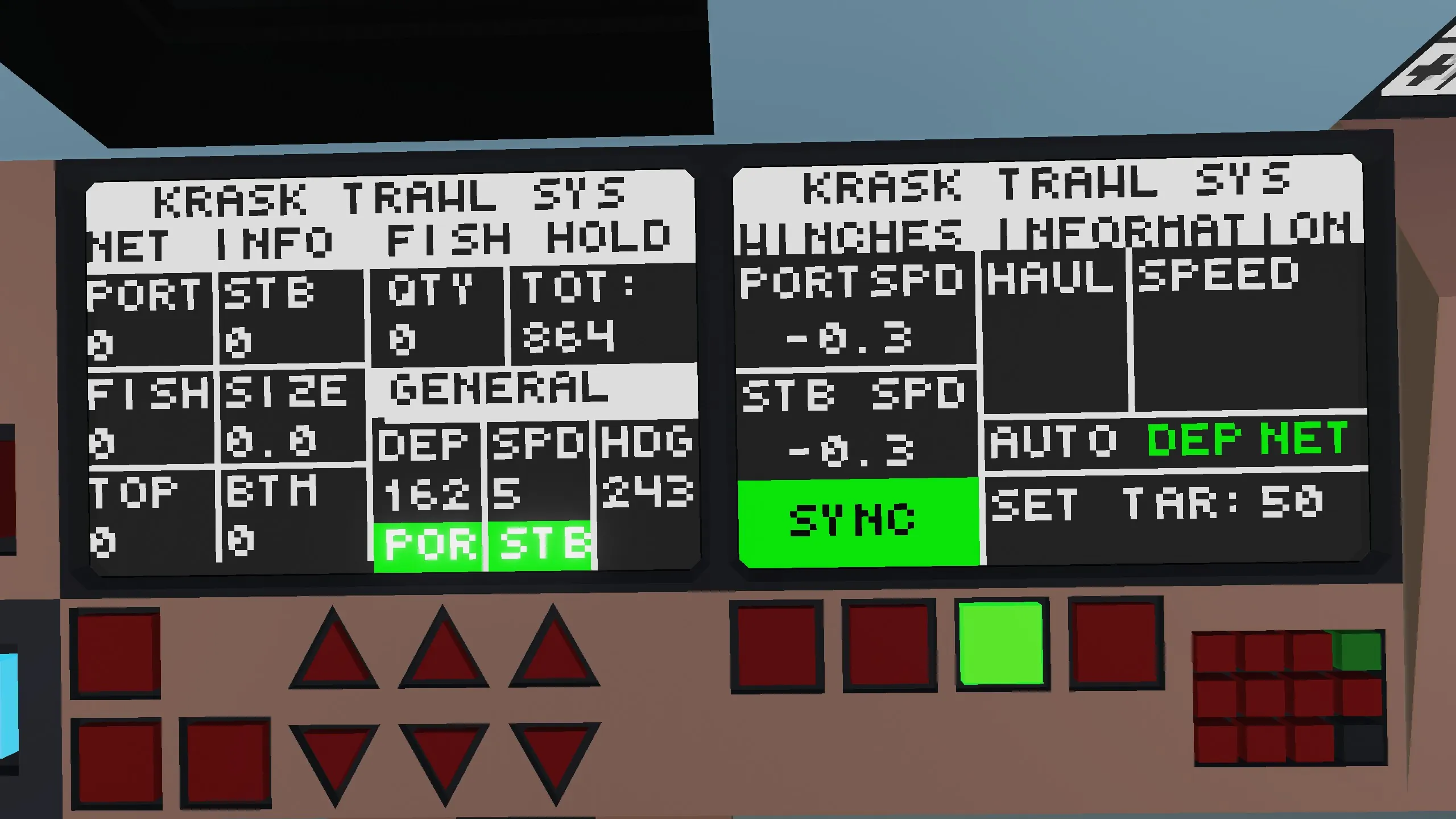 Will deploy the net, haul the net, manage the net size and winches. Can set your desired depth (minimum 50) or just set it to 300+ to bottom trawl forever. The system will keep the net 1-2 metres above the seabed