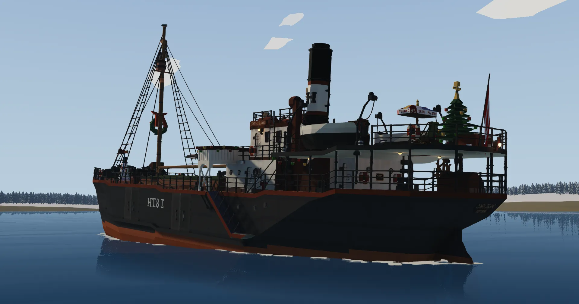 - Inspired by 1908 Seattle-Built cargo ship Northland (Later Admiral Nicholson). Otherwise unrelated. I still don't know where her navigations lights would've been.