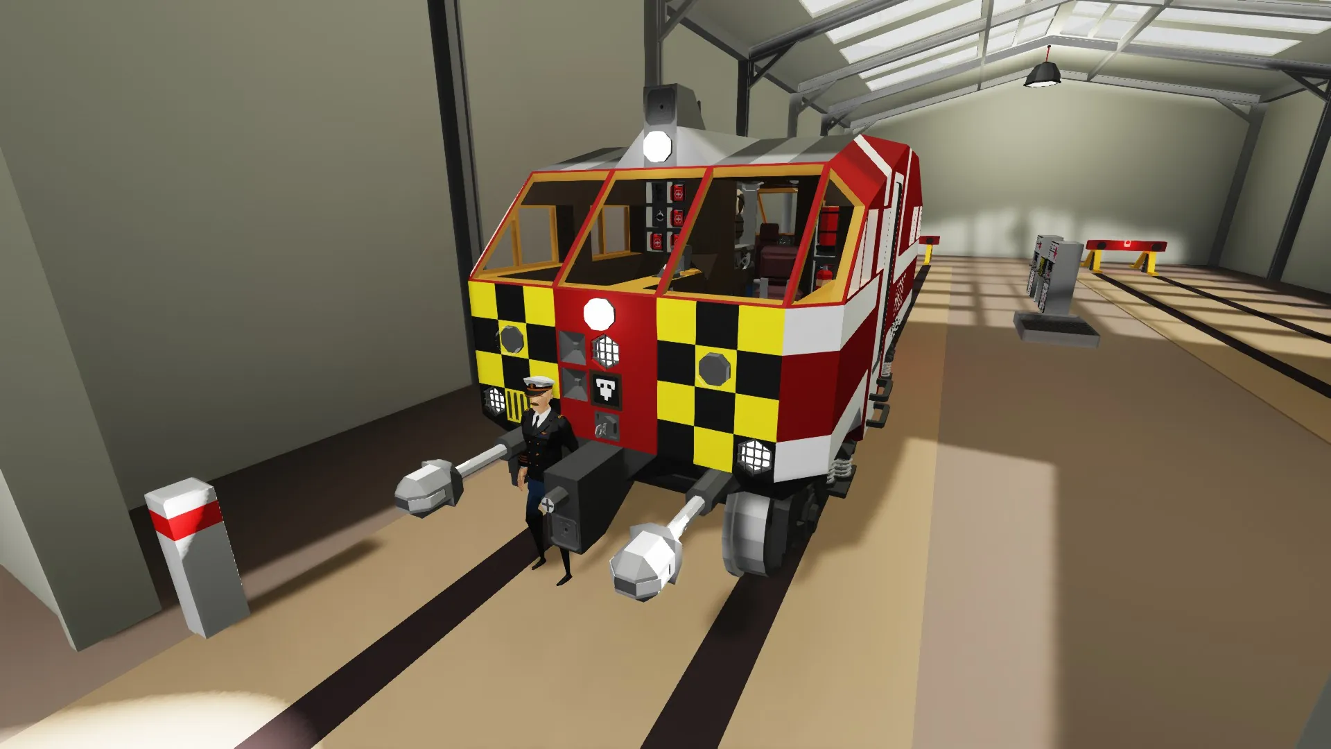 The Locomotive is accessible from both sides, from sliding doors. Jump up, then flip the breaker to give power to all systems. Seat on a pilot seat at either end, and take off.