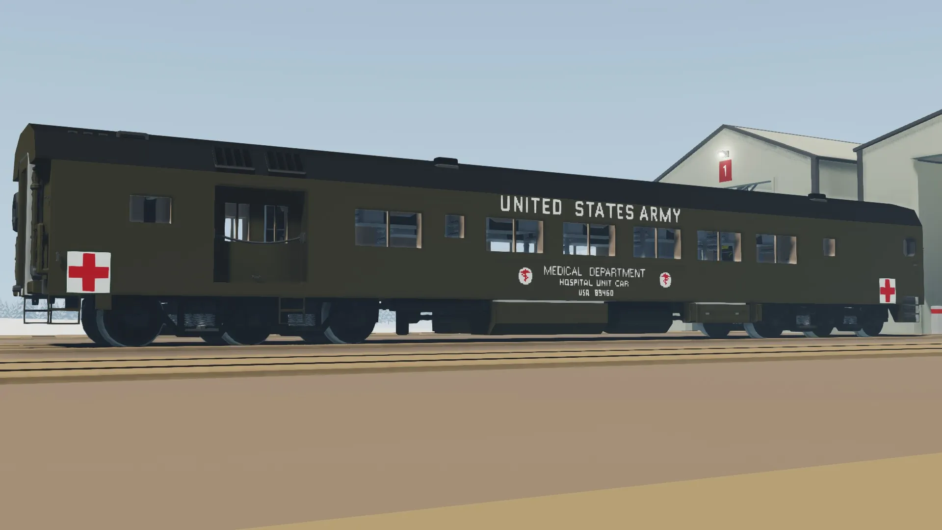 A U.S. Army hospital unit car was a specialized railway carriage, often converted from passenger coaches, used for transporting and treating wounded soldiers, featuring wards, kitchens, pharmacy areas, and even operating rooms, forming part of larger Army hospital trains especially during World Wars I and II, providing mobile medical care.