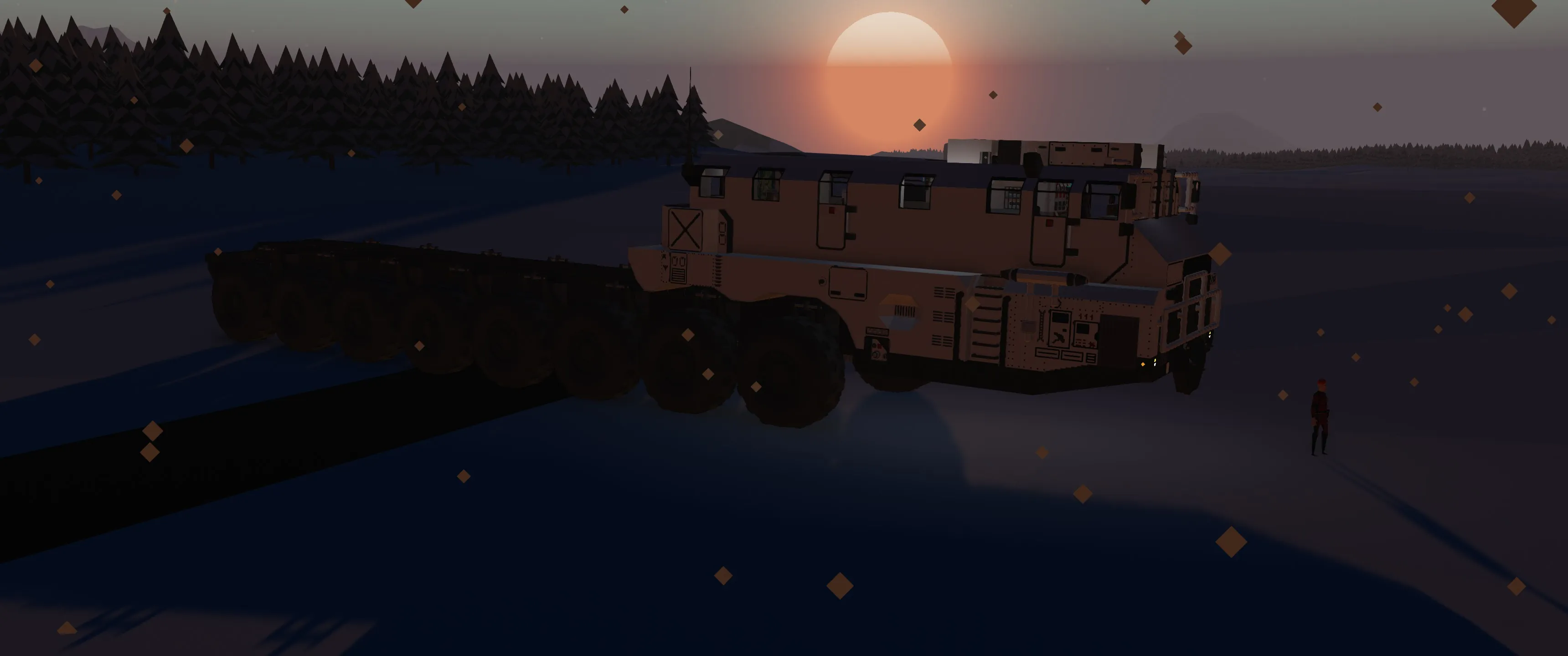 «Никогда не вставали утром с мыслью о огромной 24-х колёсной махине? Теперь будете. Да, это больше похоже на многоножку из мира грузовиков, но за то на это можно уместить целый дом и не только.»