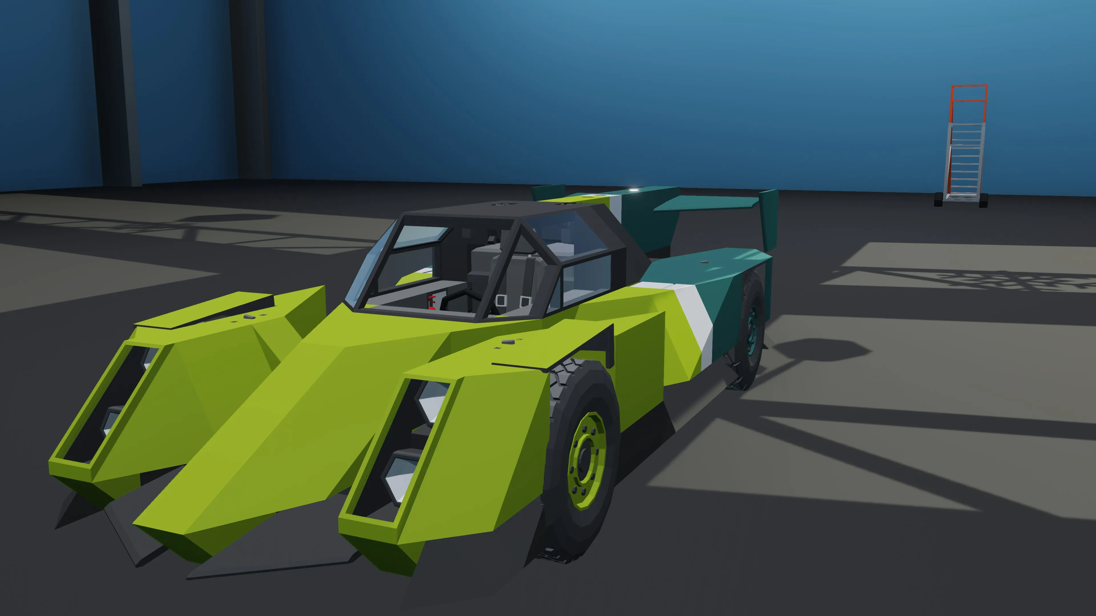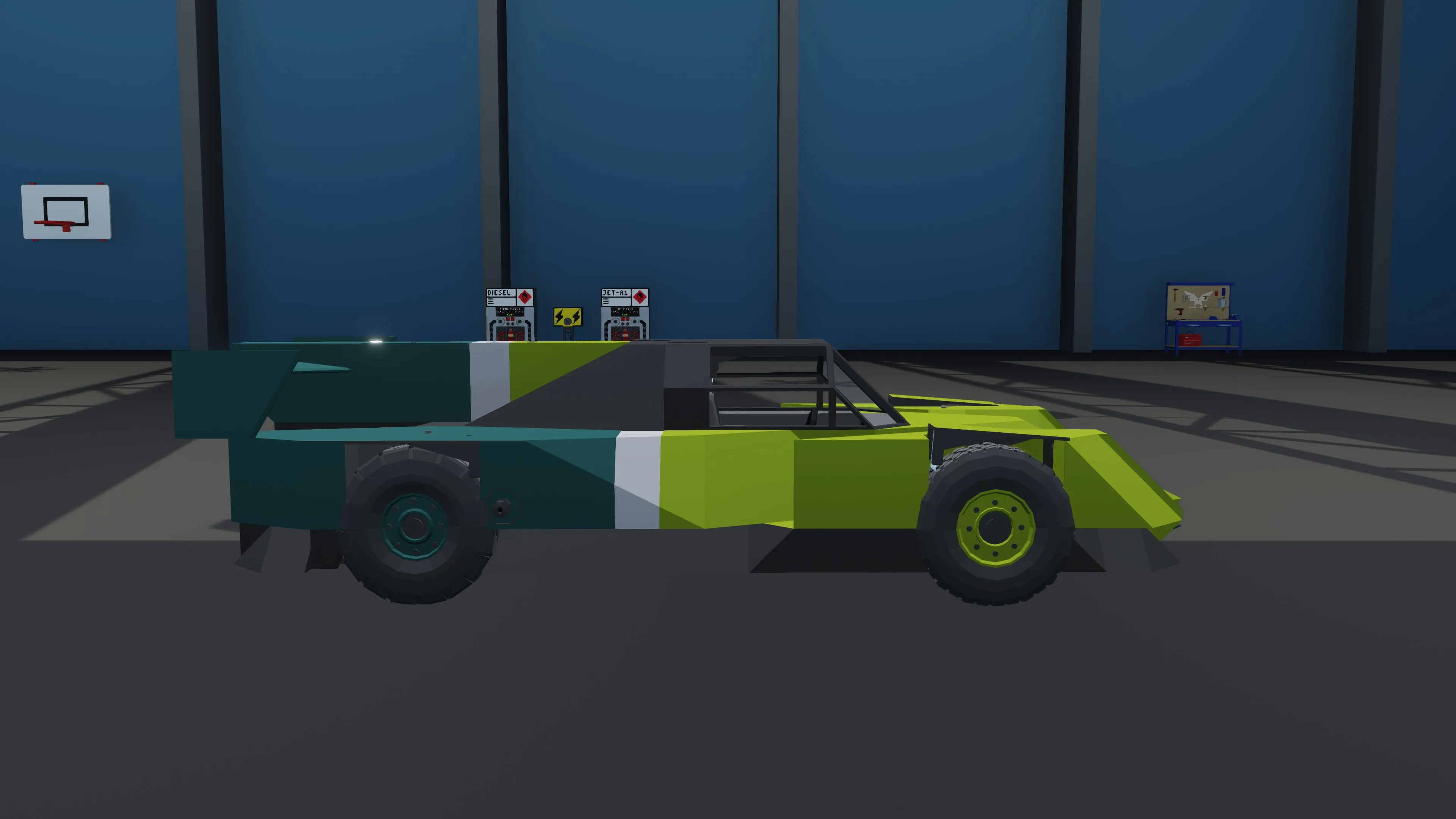 Somewhat to scale hybrid endurance hypercar, has a hybrid drive with a h8 in the back and 4 electric motors in the front, net positive electricity production if in higher gears (i havent had problems with running out of power ever), and a 5 gear gearbox bringing it to 240-245 kmh max speed. Cornering capability is as good as i could make it, leaning more towards understeer however. Exercise caution when braking in a turn, as the steering seems to get completley locked up.