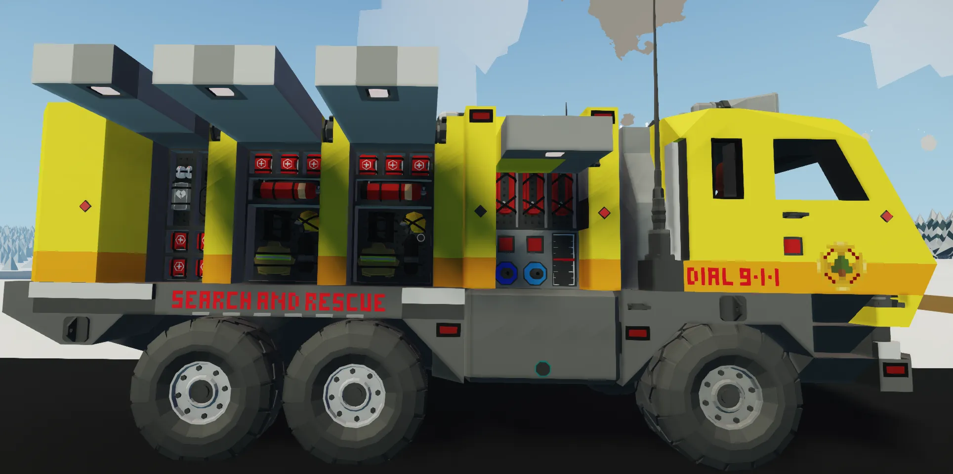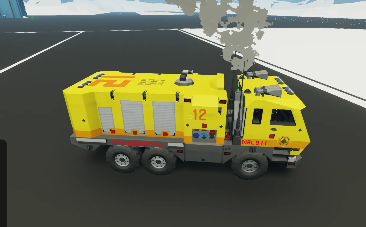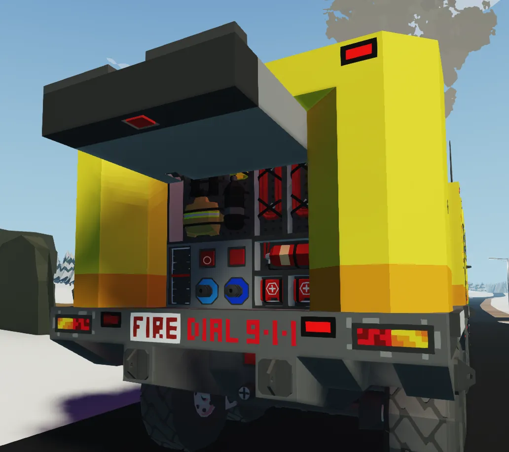 This version includes the fire rescue package which has a large water tank, water cannon, and 3 hose attachment points with pumps, this can be refilled if need through the other 3 hose attachments. Fire fighting equippment is also loctaed in the back of the truck, and 2 extra seats for a buddy or 2 help you with missions!