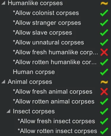 Normally you'd have to create two separate stockpiles, one for fresh and one for rotten corpses. With this however, you can put fresh and rotten entity corpses together with rotten humanlike corpses in one stockpile and put the fresh humanlike corpses in your nearest butcher... burning stockpile!