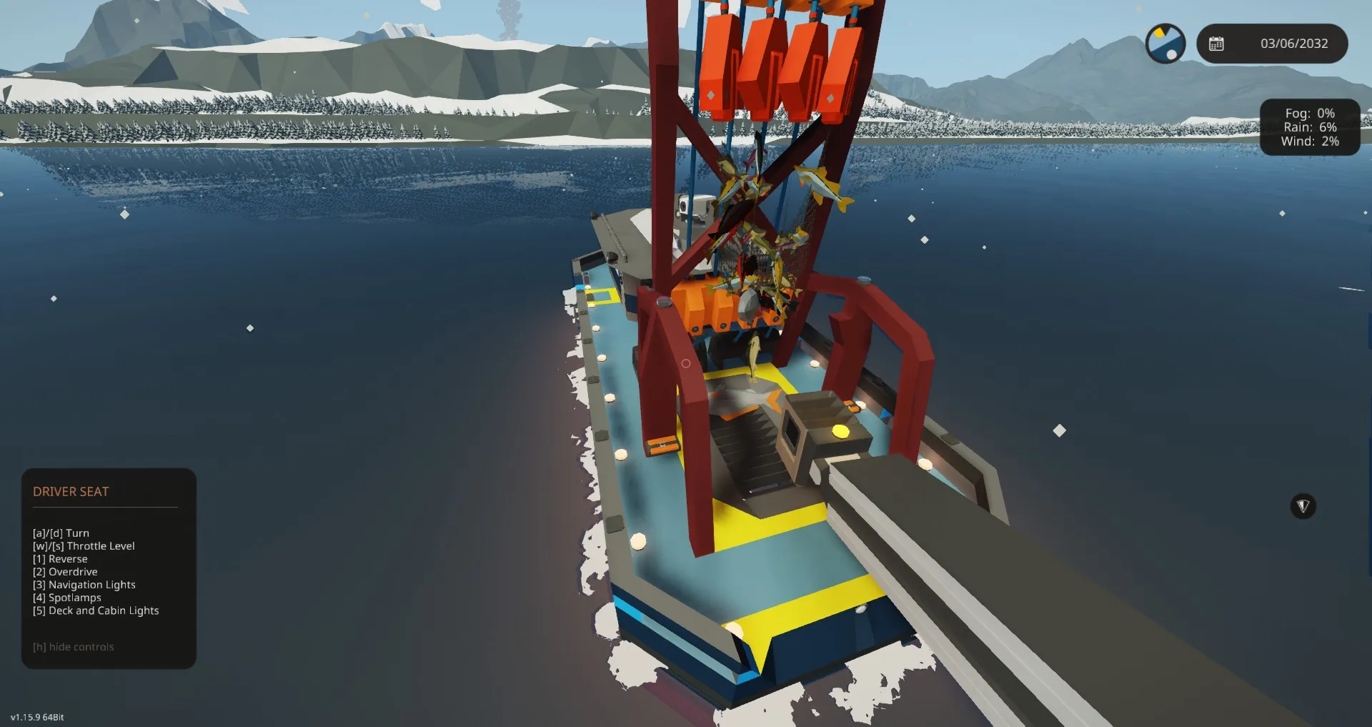 The total fish capacity between the hold and the net is somewhere around 1,100 fish. With the improved, 150 meter winches and a larger net configuration, you'll be able to go out to the deep areas and get more of those mid-level schools the Riptide just didn't have the ability to reach.