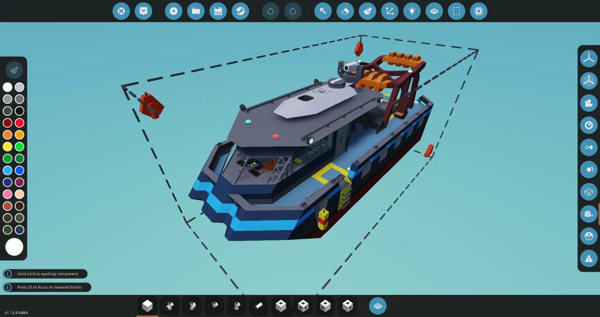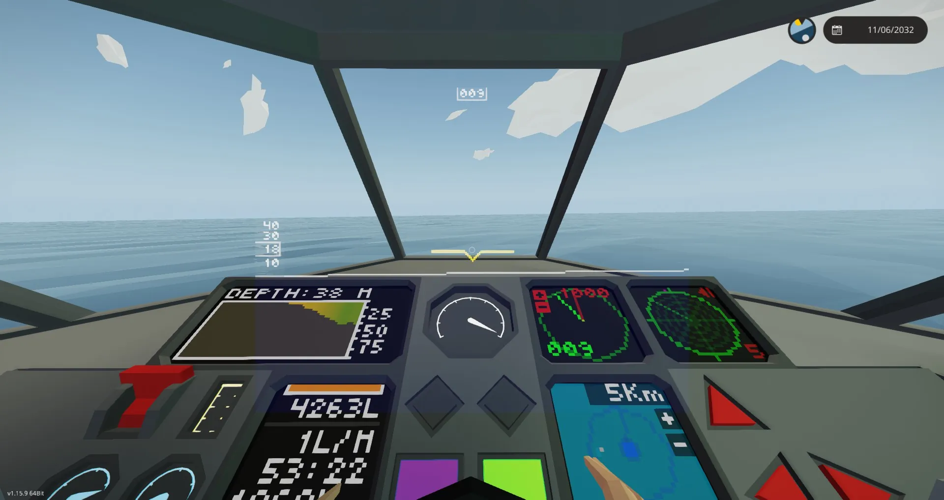 On top of this, the Thresher features Radar, rotating land-scan LIDAR for avoiding small islands on longer trips, fish scanner, and an all new HUD VISOR system to provide that same sense of situational awareness without the expense of a large display unit on the main console.