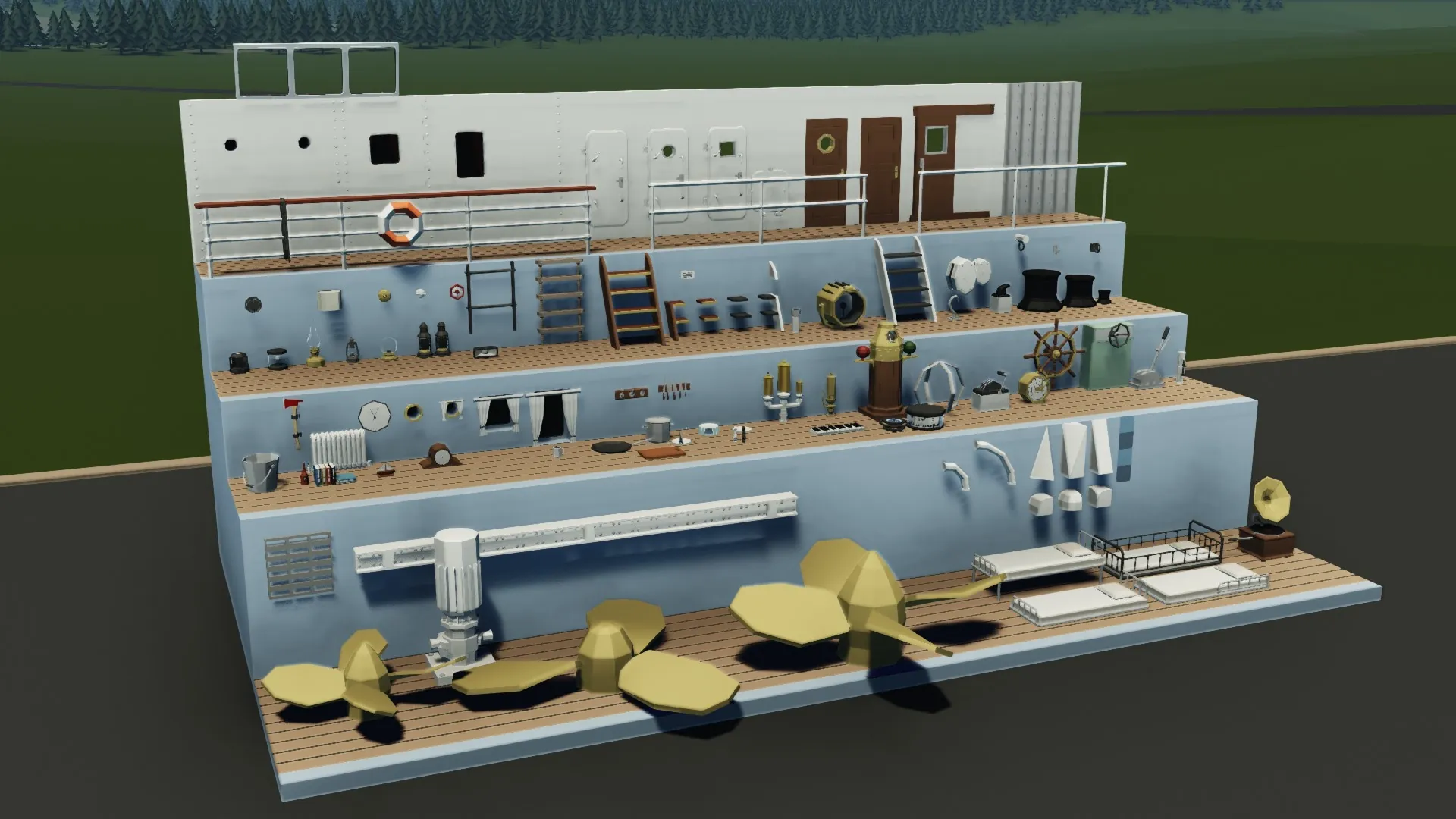 This mod adds 289 new parts including decorations, lights, doors, levers, buttons, windows etc. for modern and old ships.