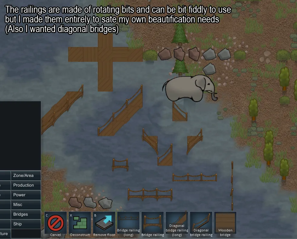 adds supportless bridge tile, a boardwalk floor tile and railing pieces you can decorate with and even make diagonal bridges!