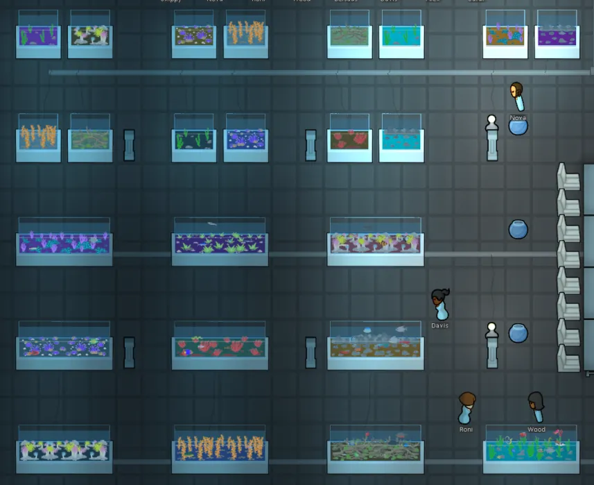 Aquarium is a mod that allows your pawns to be “aquarists” (fish keepers) and provides items and AI mechanisms to keep pet tropical fish.