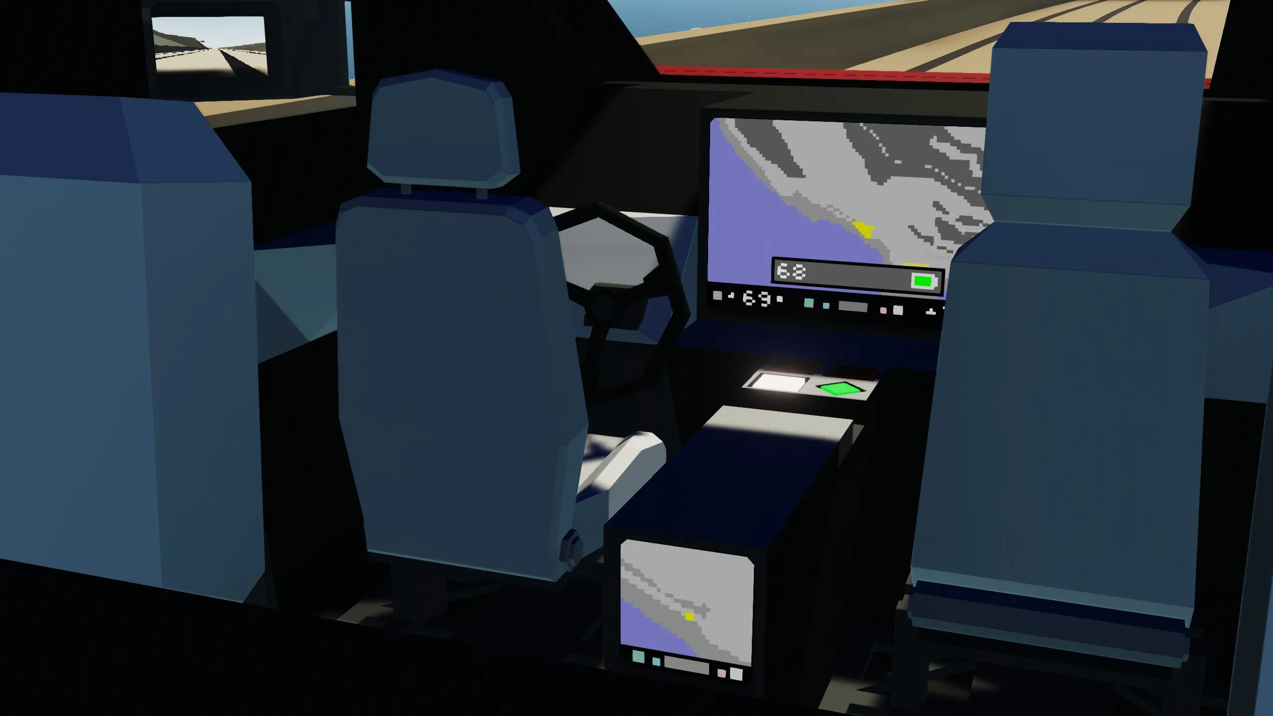 [*] Center Console With OS System: Controls gear and lights.