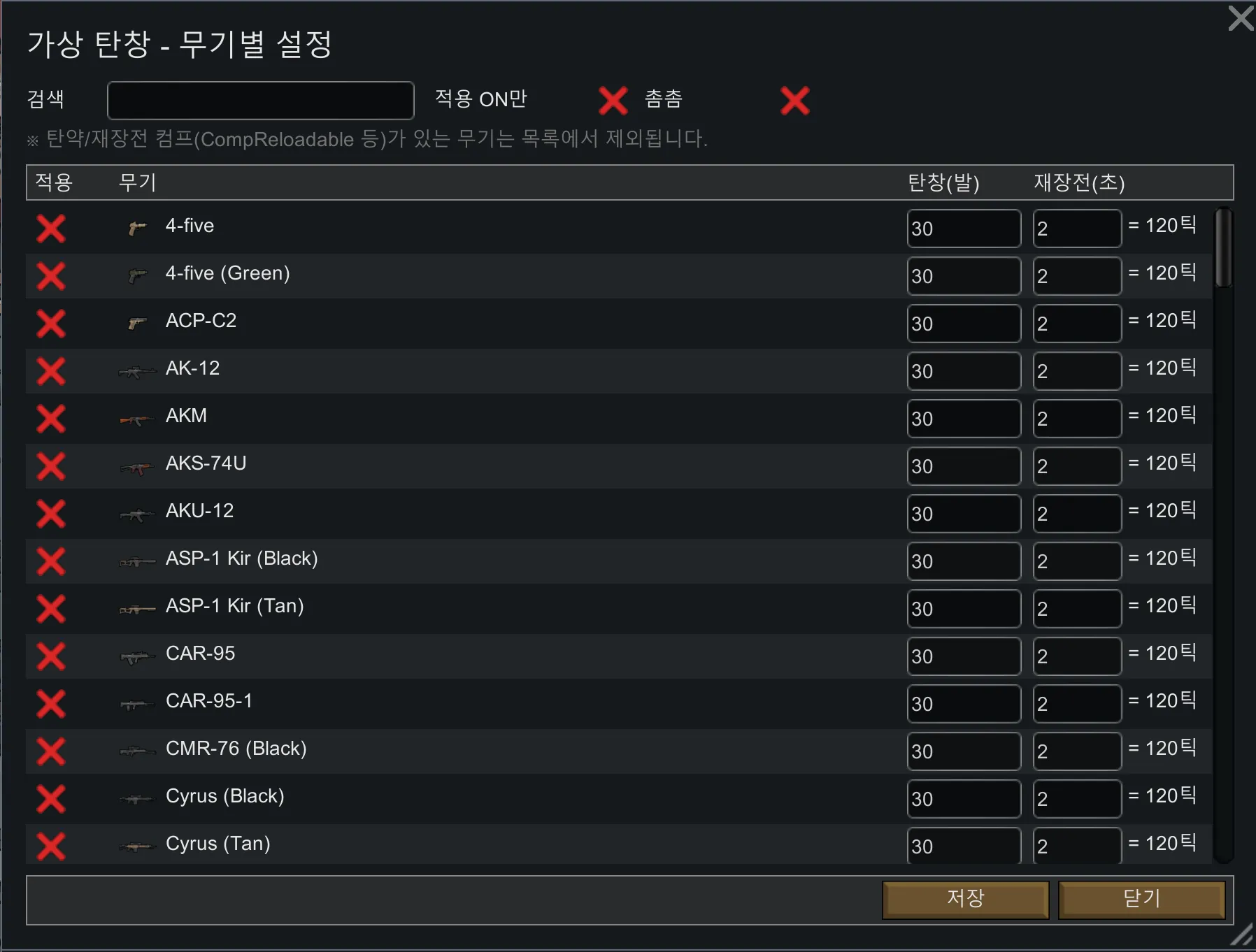 또한 ‘가상 탄창’ 기능을 사용할 수 있습니다(실제 탄창 아이템이 생성되지는 않습니다).