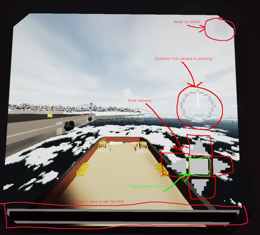 Overlay for a camera to control the pivot, FOV, and night vision. Technically should work for any screensize, but the UI/overlay gets kinda smashed/distorted on 1x1 and maybe things like 1x3's. Screenshot is from a highrez 1x1 display (96x96 px)