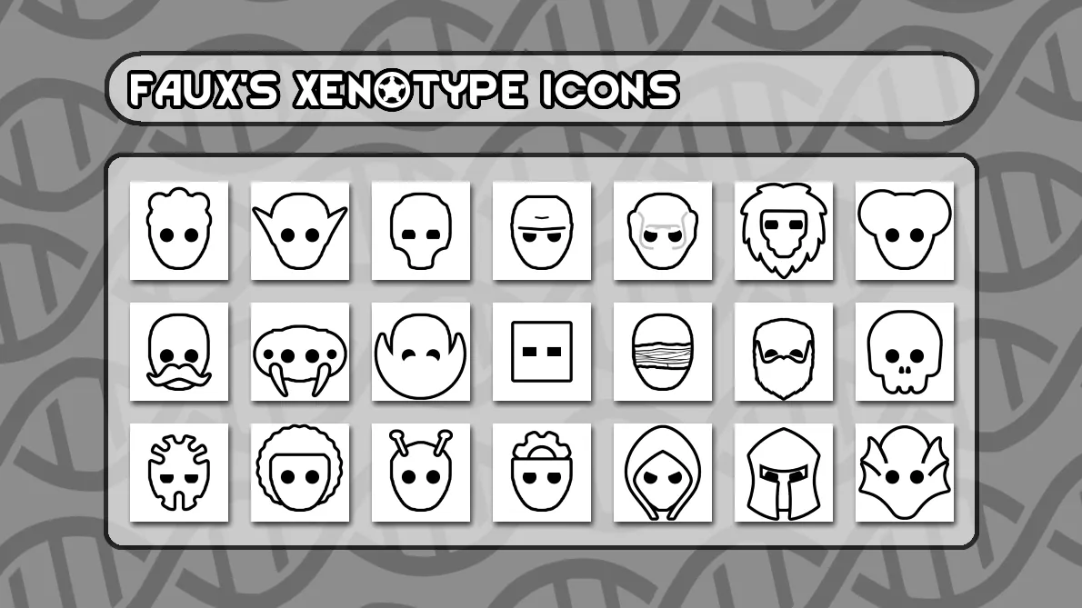 Faux's Xenotype Icons is a standalone mod in the Faux's Icon Anthologies collection. For new collections of variously themed ideology icons, check out the [url=https://steamcommunity.com/workshop/filedetails/?id=2906028642]Faux's Complete Icon Anthology collection here[/url] or visit some of the examples below.